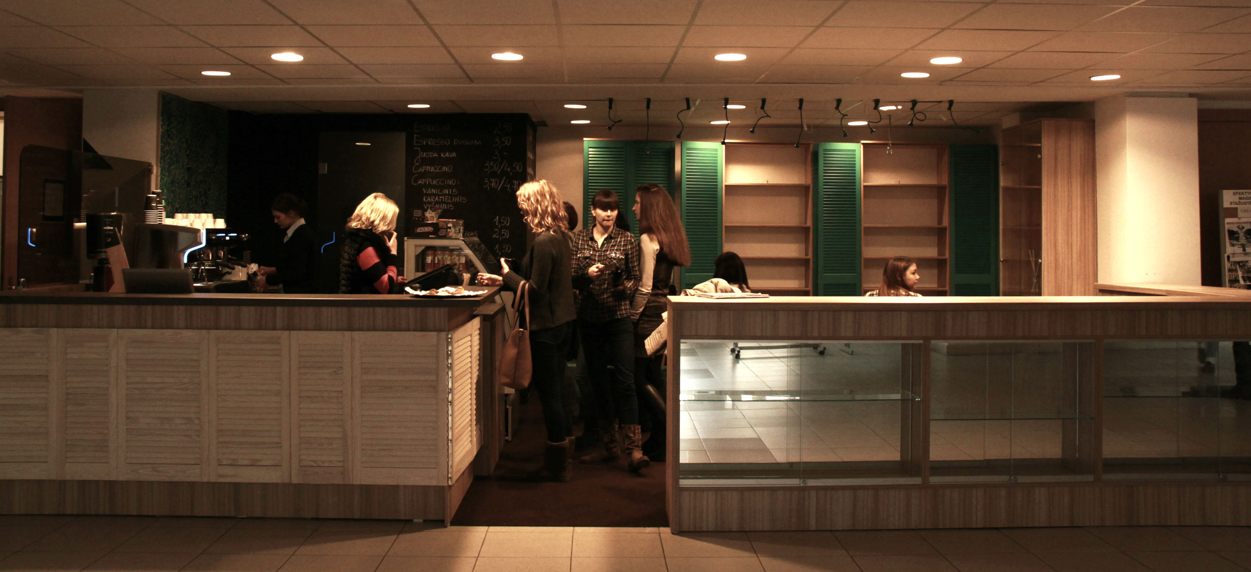 Владелица кофейни Аста Казимирениене (Asta Kazimirėnienė) даже не успела еще придумать название своему новому бизнесу, но зато стала первой, кто открыл подобное заведение в университете: «Мы хотели создать такое место, где все студенты могли бы время от времени отдыхать от постоянной нагрузки. Подобного кафе еще не было в университете – и мы сделали его, потому что это удобно для всех! Сейчас мы планируем расширить наш бизнес. Думаю, что это будет сеть небольших университетских кафе, и надеюсь, что они будут пользоваться спросом».