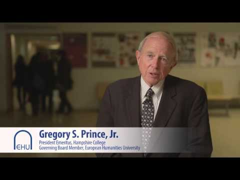 Грегори Принс, Член Управляющего совета ЕГУ, почетный президент Гэмпширского колледжа (Амхерст, Массачусетс, США), автор книги «Научите их бросать вызов власти и строить здоровое общество» (Teach Them to Challenge Authority, Educating for Healthy Societies), в которой среди прочего рассказывается о ЕГУ и его миссии и подчеркивается его важность для Соединенных Штатов, а также для Беларуси.