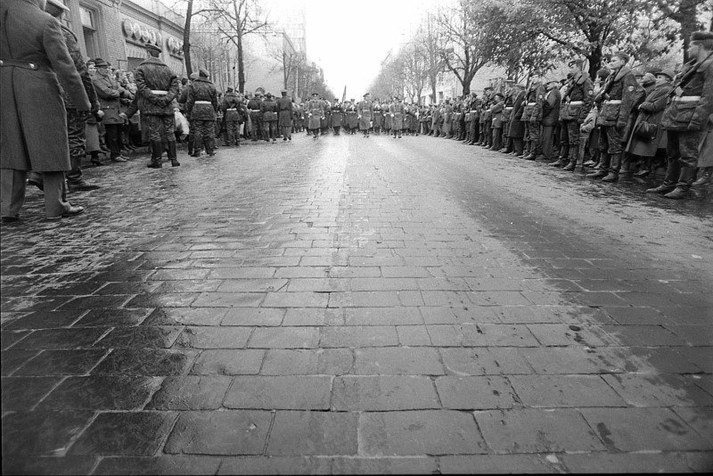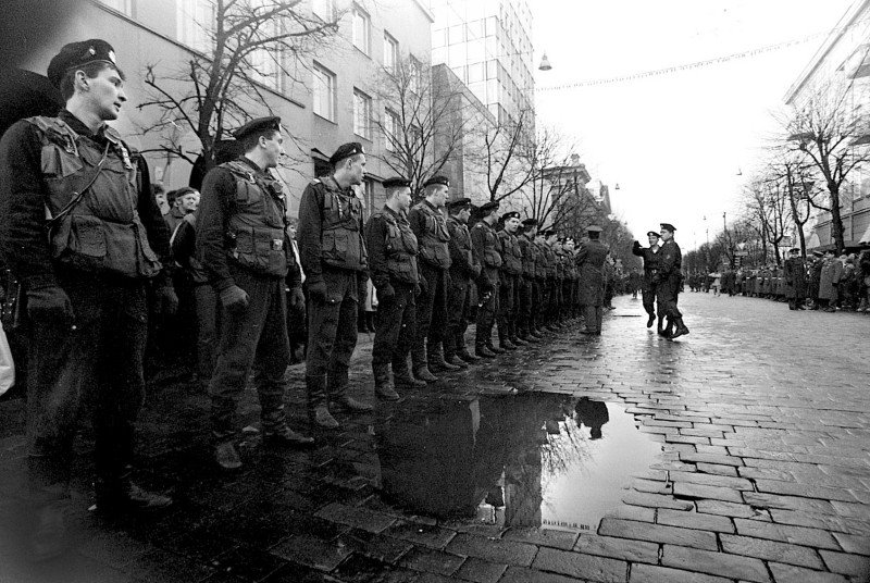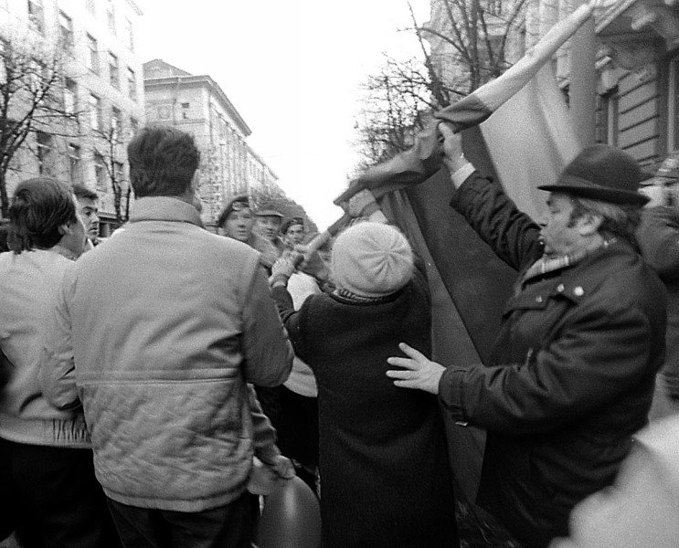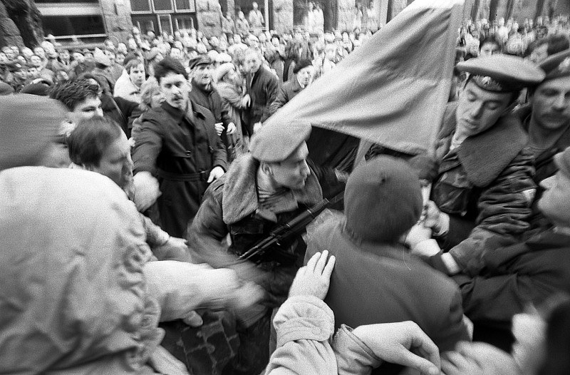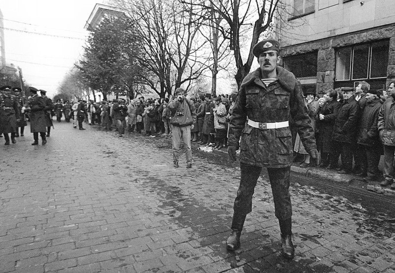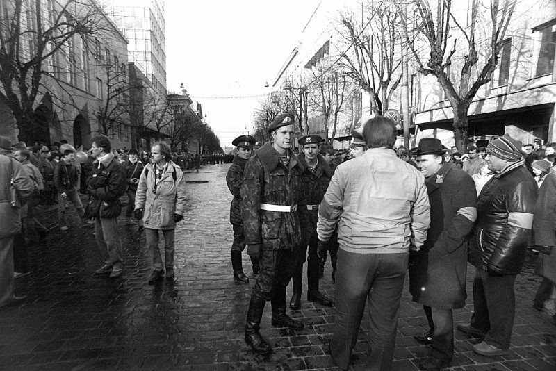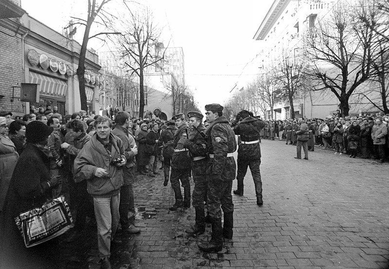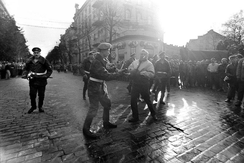 Фотограф-летописец Паулюс Лилейкис (Paulus Lileikis) 25 лет назад запечатлел на черно-белую фотопленку мгновения (для увеличения щелкнуть мышкой) того события: руководство коммунистов-коллаборационистов, активистов времен возрождения, которые пытались сорвать военный парад и советских десантников, которые пытались пресечь эти попытки.