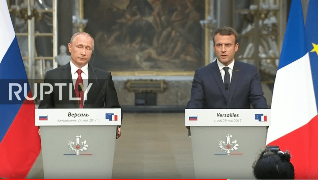 Накануне встречи Макрон пообещал российскому коллеге Владимиру Путину «требовательный диалог», указав, что с Россией необходимо обсуждать некоторые международные темы, в частности ситуацию в Сирии. Французский лидер также отметил, что будет обсуждать с Путиным украинскую проблему «без каких-либо уступок».
