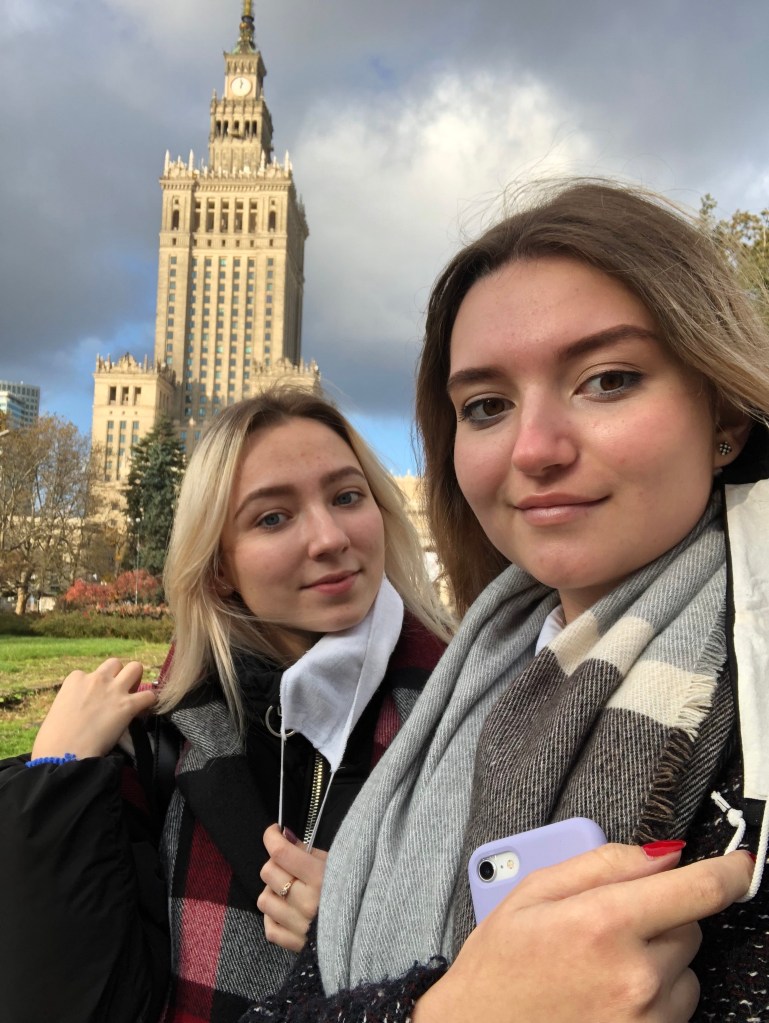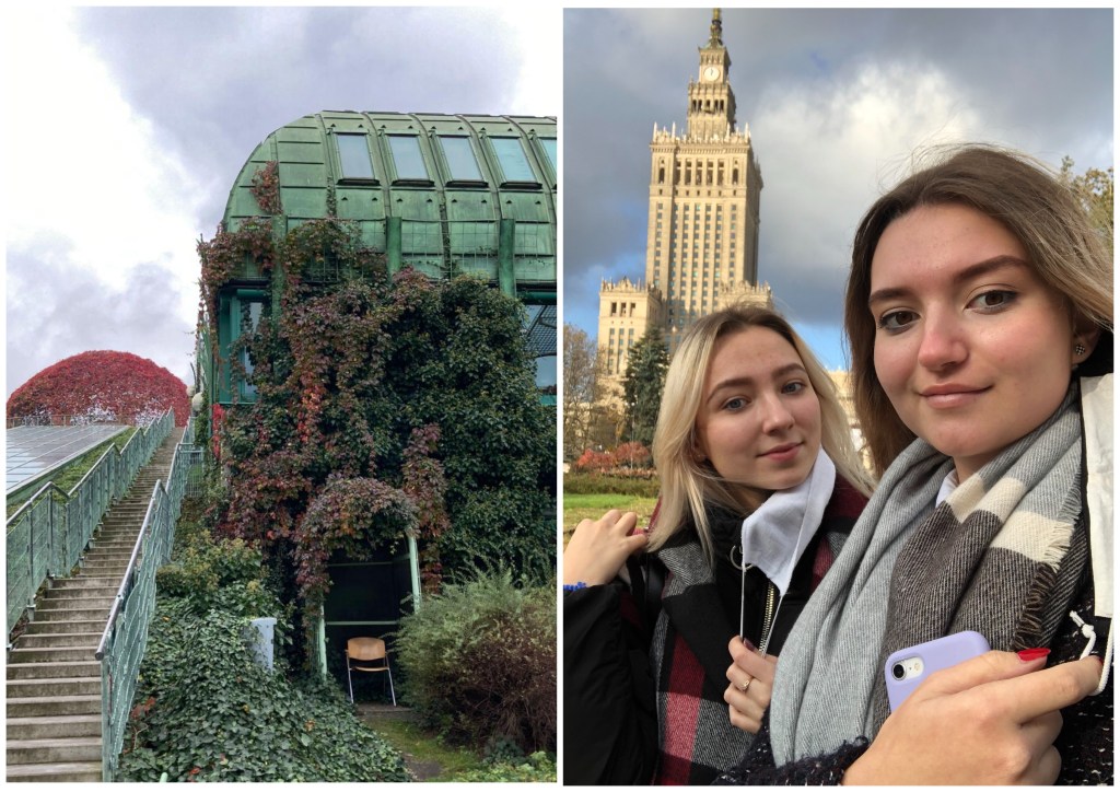 Мария: Свободного времени не так много, как предполагалось. Однако, если оно есть, то мы ходим гулять. Город невероятно большой, поэтому пытаешься его узнать максимально много за максимально короткий срок. Также мы посещаем галереи и выставки. Сейчас, конечно, ситуация омрачилась входом Польши в красную зону, а также митингами «Отмены закона об абортах». Но не стоит расстраиваться: ведь в Варшаве много парков, которые можно посетить даже сейчас, нужно заметить, что там гуляют белочки и павлины.