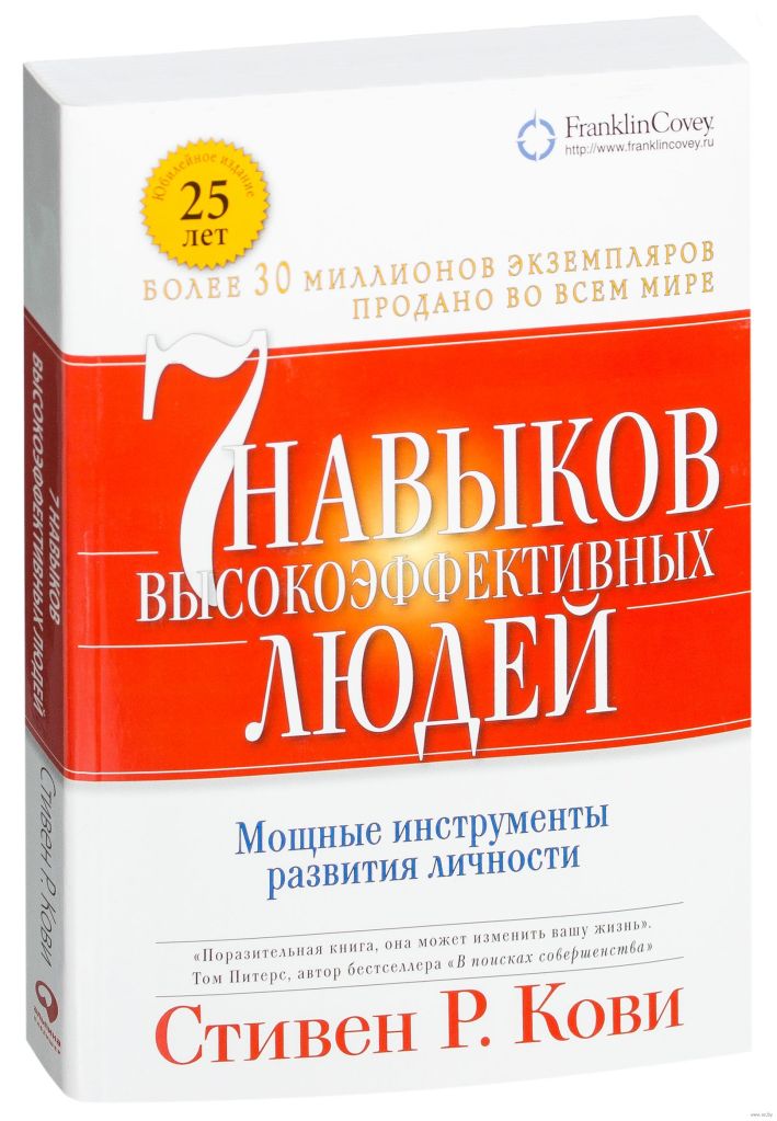 Стивен Кови «7 навыков высокоэффективных людей». Одна из лучших книг по саморазвитию. Автор дает конкретные и понятные посылы о развитии личности. 7 глав — 7 навыков. Все предельно просто, но очень важно.