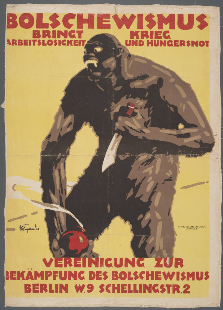 Враг под безобразной личиной нечеловека – важная пропагандистская штучка плаката в XX в., придуманная англичанами против Германской империи: