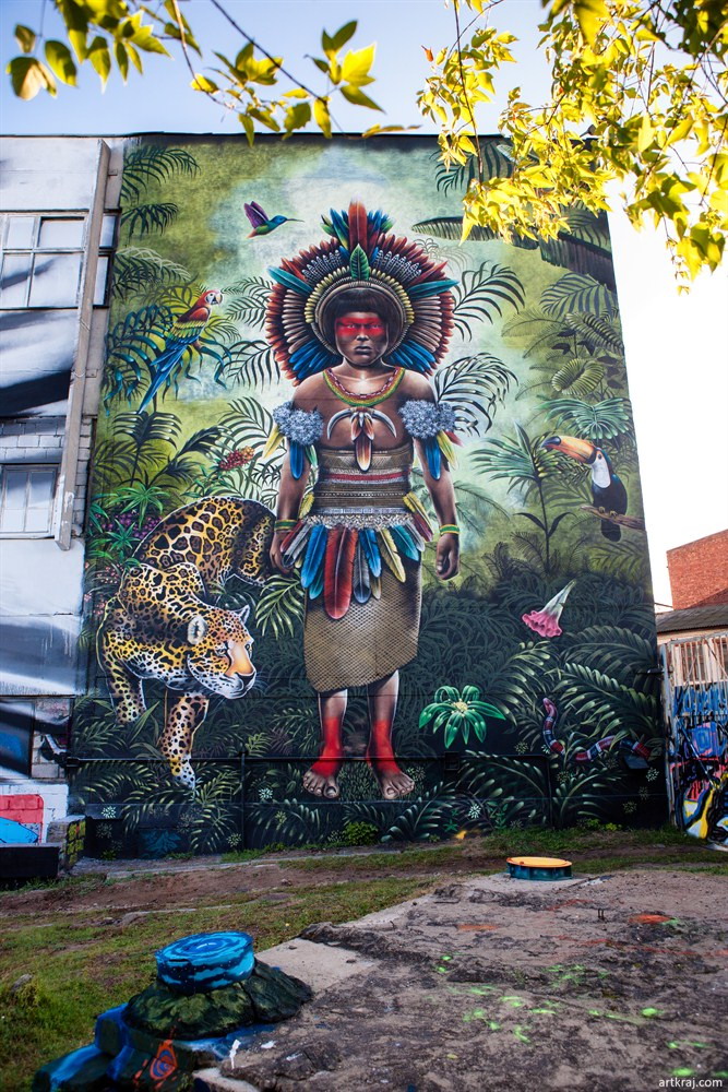 Таццяна: Аўдыё-гід праводзіць слухачоў па вуліцы Кастрычніцкая ў Мінску. На сценах яе будынкаў змяшцаюцца вялікія графіці. Іх стваралі мастакі з Беларусі і Бразіліі цягам 5 год (з 2014 па 2017, і ў 2019 годзе). Гэта адбывалася падчас бразільска-беларускага фестываля стрыт-арту Vulica Brazil, які ладзіўся пад эгідай амбасады Бразіліі ў Мінску.