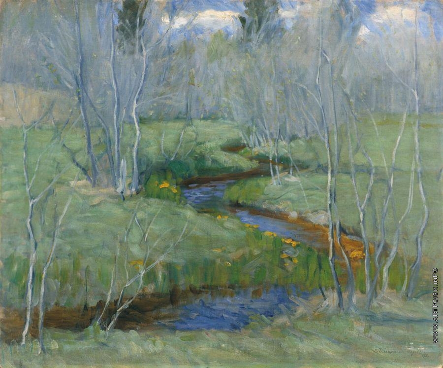 На мой пагляд Бялыніцкі-Біруля апроч яго магічнай здольнасці перадаць таямнічасьць імгненьня і адчуваньня ад прыроды, быў і майстрам напісаньня вады, якая на карціне не проста адлюстроўвае неба і ўзбярэжныя дрэвы, але мае сваю самасць. У свядомасьці беларусаў існуе шмат лягендаў пра рэкі і азёры. Можа мастак і ў колер сваіх вадаёмаў таксама ўкладаў сэнс, як гэта рабілі беларусы спрадвек. Амаль чорная вада ў «Сакавіцкім сутоньні» ці «Павадку». Ці сіняя рака «Вясны» і празрыстае вока возера ў карціне «Возера Удомля».