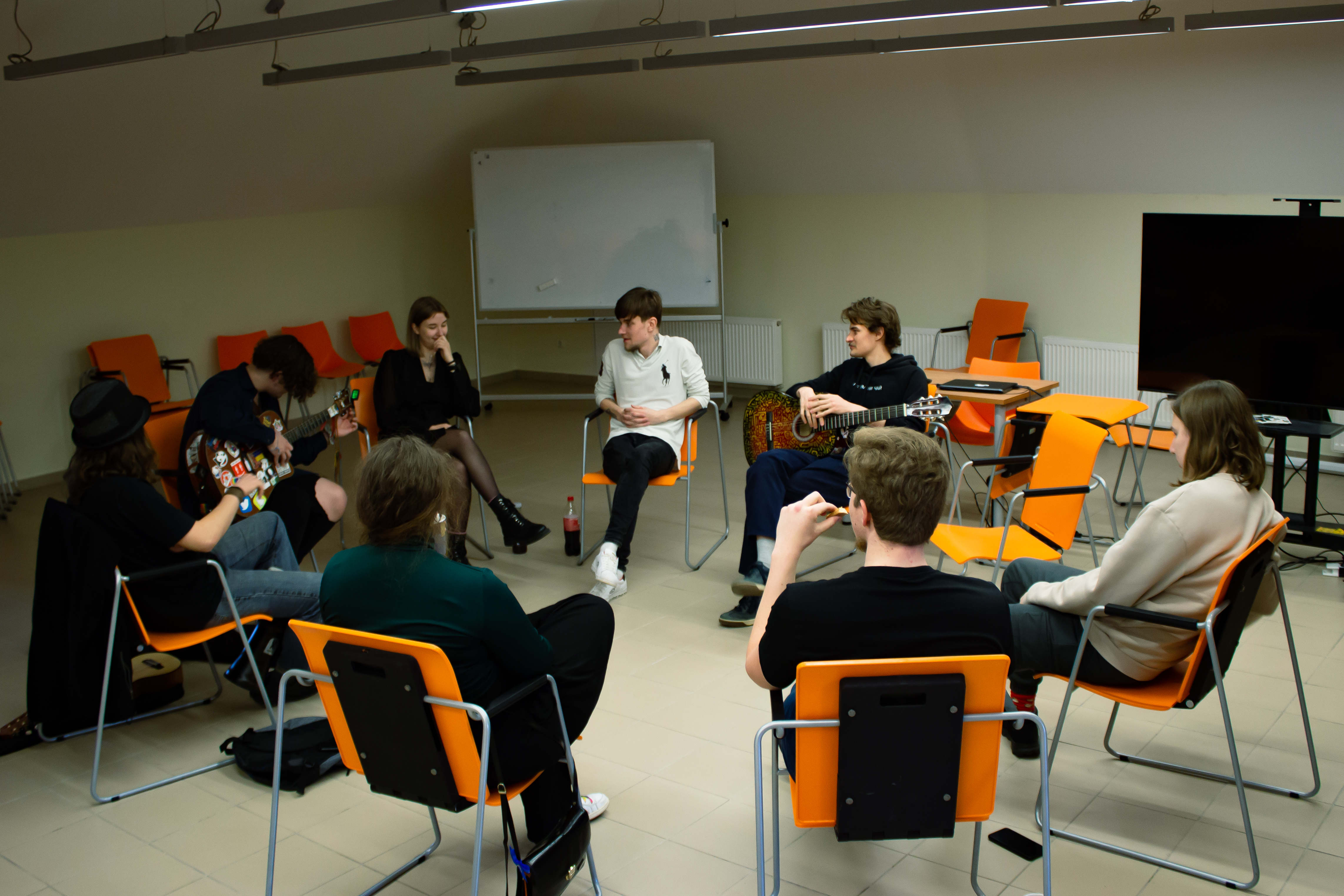 Вчера, 7 апреля, в 303 аудитории университета было атмосферно и…музыкально! Все потому что там состоялась первая встреча MUSIC CLUB — нового музыкального проекта, где каждый желающий может проявить свой музыкальный потенциал и поделиться творчеством. Создан инициативными студентами и студентками ЕГУ. Расскажем, как прошло мероприятие, какие впечатления у организаторов, самих участников и какие планы в дальнейшем.