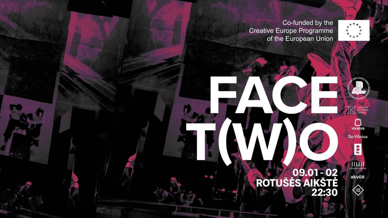 На Ратушной площади Вильнюса вас ждет удивительное событие! Мультимедийный перформанс FACE T(W)O (People Power Partnership) с участием 32 талантливых танцоров возрастом от 18 до 25 лет из разных стран и различных танцевальных стилей. А еще тебя ждет красота сценографии и проекций. Вход бесплатный.