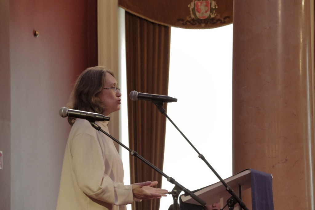 С обращением к студентам_кам выступила и спикерка Сейма Литовской Республики, а также первая женщина-гроссмейстер Литвы Виктория Чмилите-Нильсен.