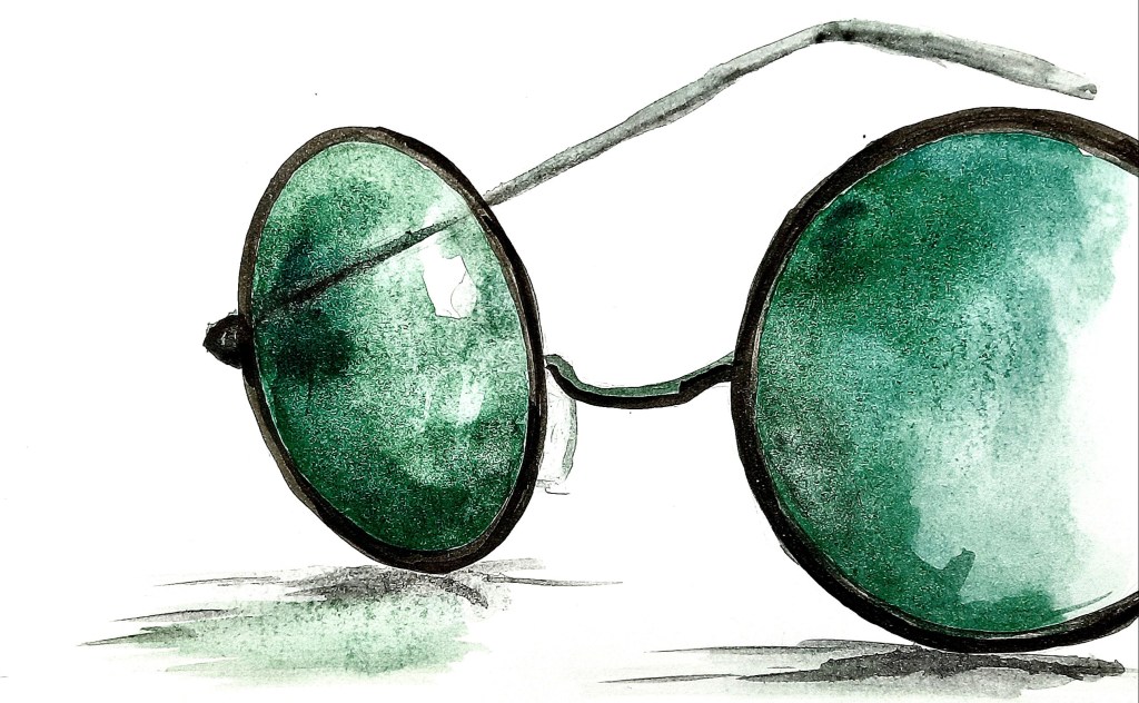 «Добрый…», — недоверчиво ответил иллюстратор и затянулся папиросой. Табачный огонек слегка отразился в тёмно-зелёных очках фигуры. Иллюстратор облегченно признал слепого.