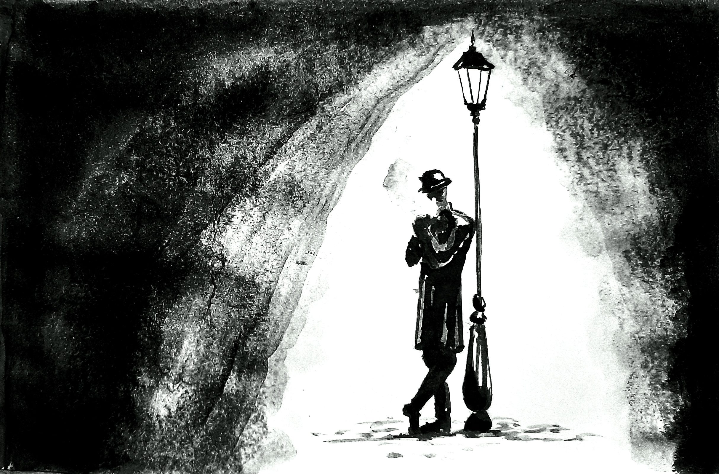 Дабы не впадать в отчаяние, усталый иллюстратор облокотился на фонарь и, достав алюминиевый портсигар, закурил толстую фабричную папиросу.