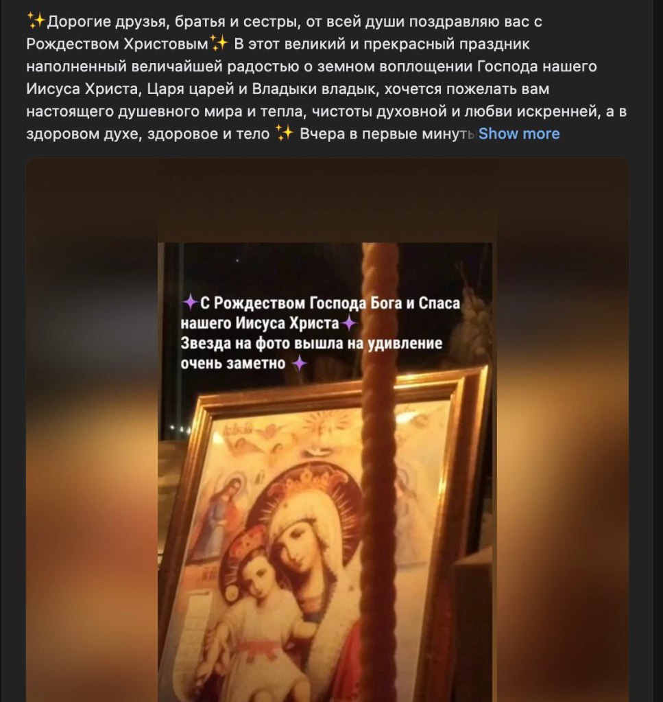 Есть ещё одна уловка, которую используют подобные каналы. Публикация отрывков из всеми любимых фильмов/мультфильмов, молитв и душевных поздравлений с праздником вперемешку с фейками.