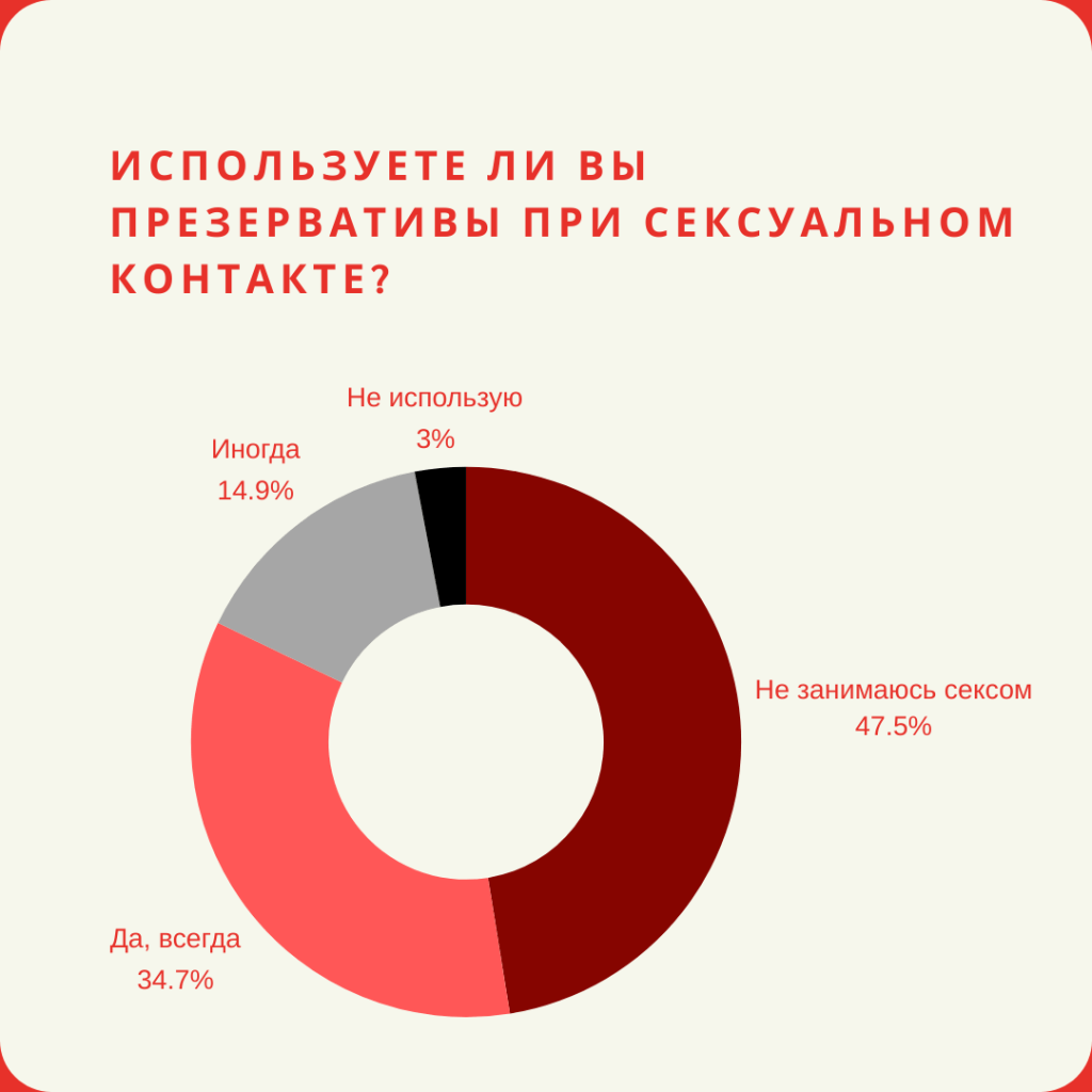 В 2023 году ВОЗ отметил рост числа людей, живущих с недиагностированным ВИЧ, в Европейском регионе. Хотя конкретные рекомендации по частоте тестирования на ВИЧ прямо не упоминались, обычно эксперты_ки советуют лицам, находящимся в группе повышенного риска, проходить тестирование как минимум раз в год. Группы риска для ВИЧ включают лиц, имеющих незащищенный секс (18% респондентов_ок), употребляющих инъекционные наркотики, имеющих много сексуальных партнеров_ок, а также людей, живущих или путешествующих в регионы с высокой распространенностью ВИЧ.