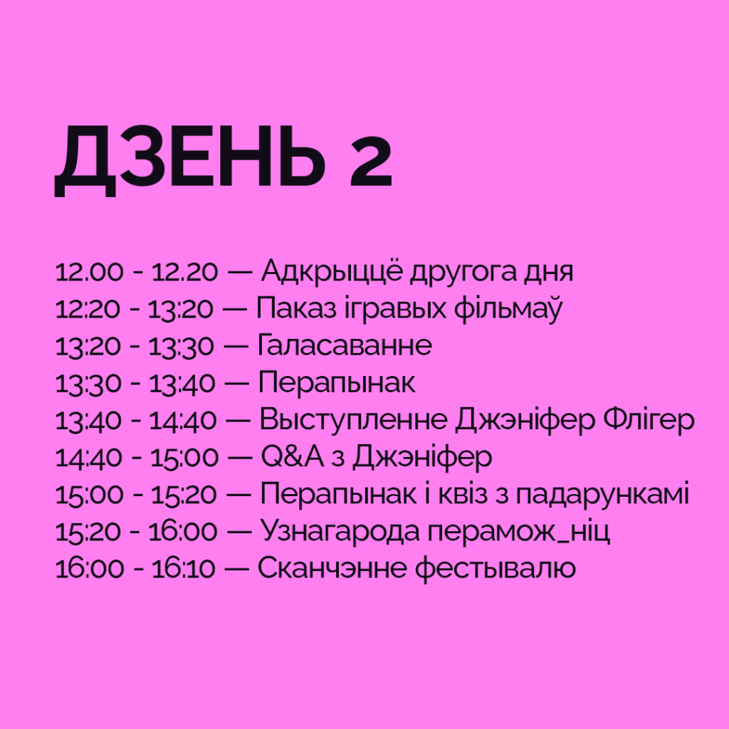 13:40 — 14:40 — Выступленне Джэніфер Флігер