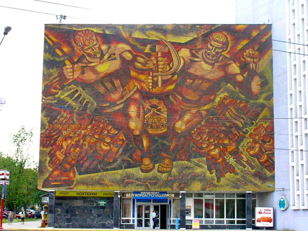 - Гасцініца «Турыст» на Партызанскім праспекце – тут можнай знайсці знакамітую мазаіку «Беларусь партызанская». Суворыя твары беларускіх партызан, выкананыя ў карычневых адценнях сваімі масштабамі дакладна здзівяць кожнага.