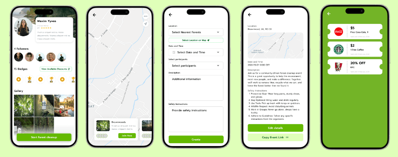 Приложение также предлагает систему бейджей и наград за активное участие, а также скидки в компаниях-партнерах за достижения в экологии, что стимулирует пользователей к долгосрочному участию и постоянному вкладу в охрану окружающей среды.
