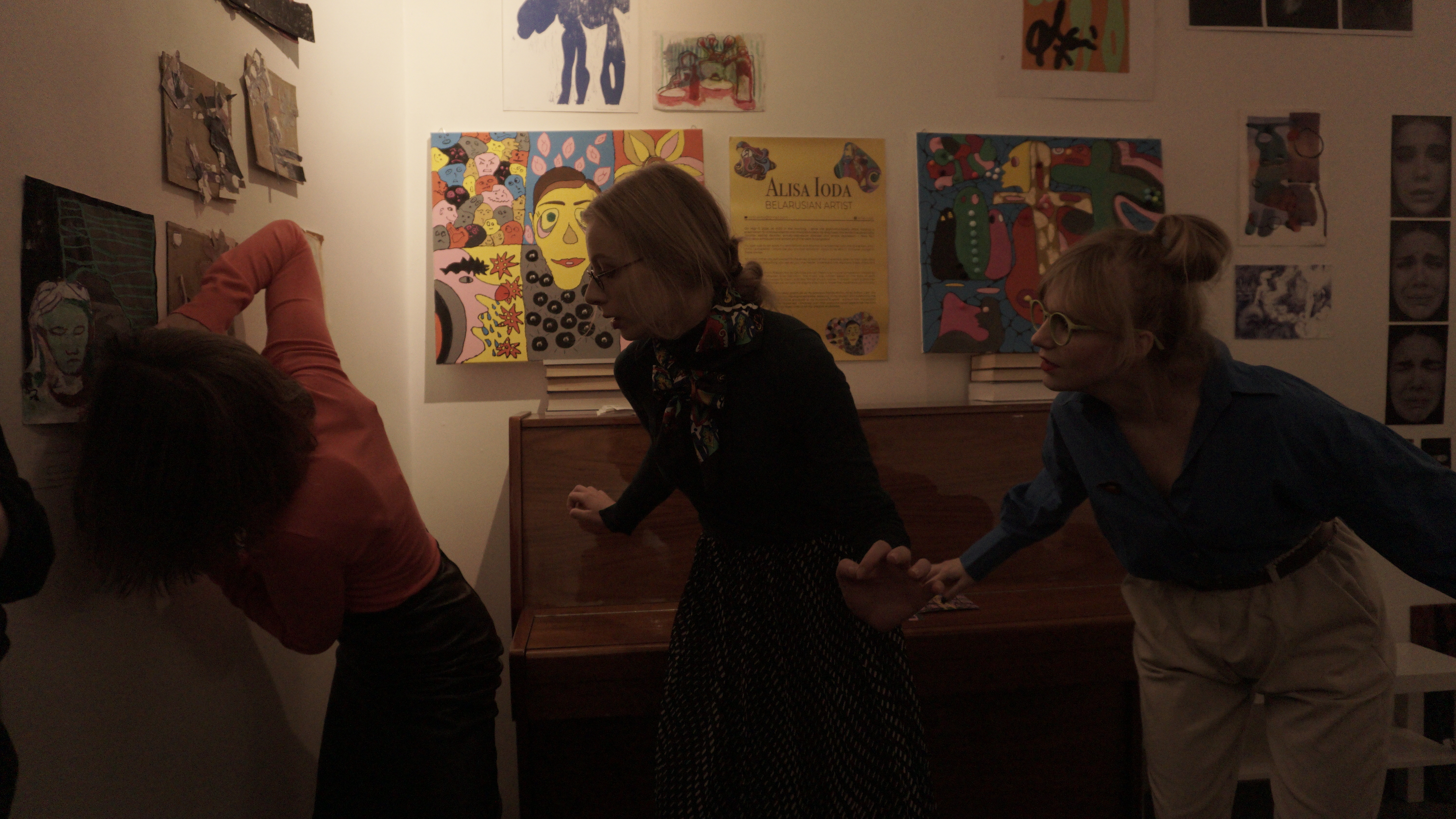 На открытии зрители_ницы смогли увидеть выступление студент_ок программы «Театральное искусство и актёрская игра», а также экспресс мастер-класс по созданию коллажей от художницы и участницы выставки Станиславы Бенчук.