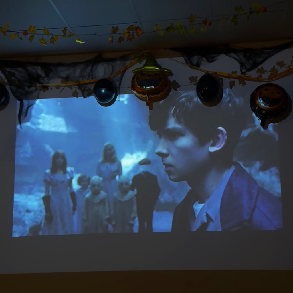В украшенной тематическим декором аудитории, в атмосфере тепла и праздника зрителей ждали ароматная пицца и хорошее настроение. Главным событием вечера стал показ фильма режиссёра Тима Бёртона «Дом странных детей мисс Перегрин» в оригинальной озвучке с субтитрами на русском языке. Фильм, с элементами фэнтези, ужасов и лёгкой готической эстетики, отлично сочетается с хэллоуинским настроением. После просмотра учащиеся обсудили кинокартину и поделились своим мнением о ней.