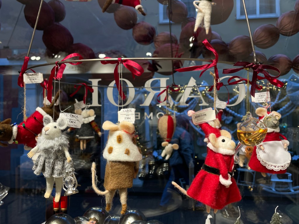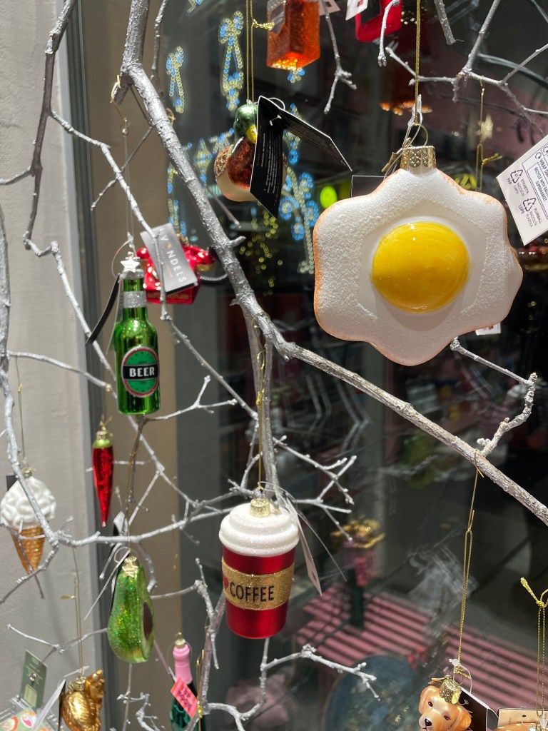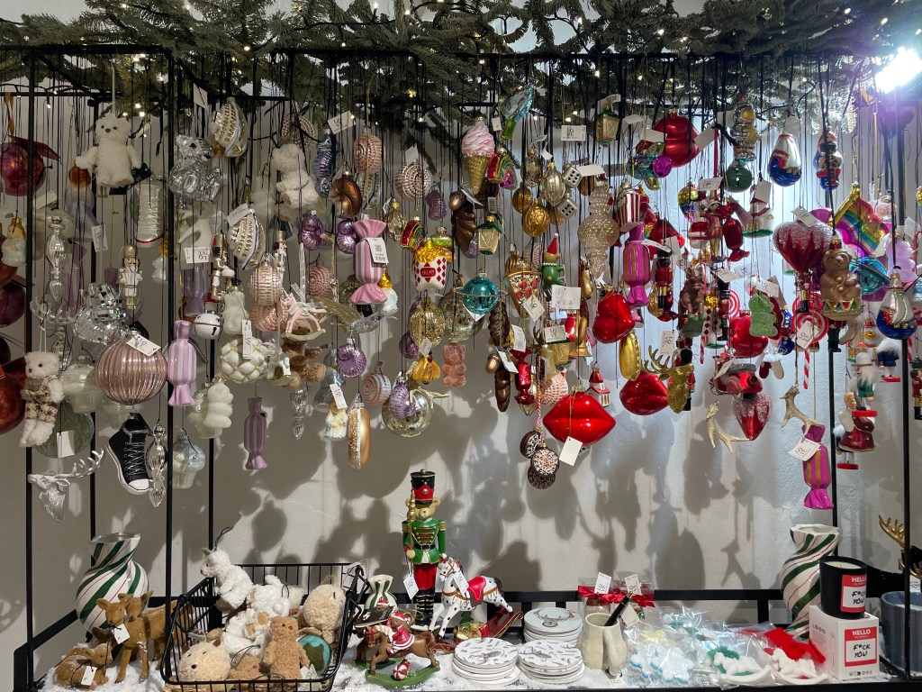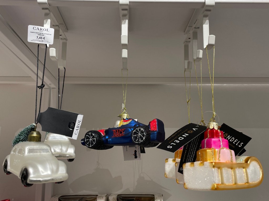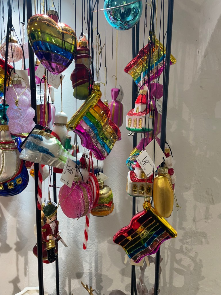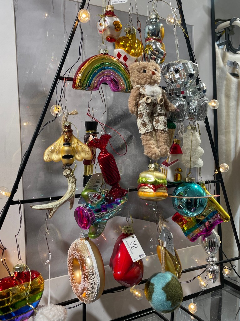 Это магазин товаров для дома очень приятно меня удивил. Как и в Local House Amatų namai, там вы можете найти не только елочные игрушки, но и огромное количество потенциальных подарков. Лично я бы поставила этот магазин на первое место в этом списке по разнообразию ассортимента. Предметы интерьера, которые вы можете увидеть в этом месте, ранее не встречались мне буквально нигде – они уникальные и креативные. Если вы хотите сделать небанальный подарок кому-то – практически любой предмет оттуда вам подойдет. Среди игрушек вы увидите и лобстера с пончиком (18 евро), и красивые белые и зеленые картонные изделия на ветвях елки (9 евро), и многое другое. Затем вас встретит большой стеллаж с самыми интересными игрушками, где вы точно не сможете пропустить забавные бокалы с шампанским и коктейлями. Средняя цена здесь – 18 евро. Помимо всего необычного, что я уже перечислила, там вы можете найти тканевые леденцы (10 евро), игрушечные барабаны, перьевые шары (12 евро), машинки (7,45 евро), и даже незабываемых шерстяных мышат (17,90 евро) — в общем, рай для креативных декораторов_ок! Для подарков идеально подойдут наборы елочных игрушек – в среднем их стоимость около 24 евро за 3-4 игрушки.