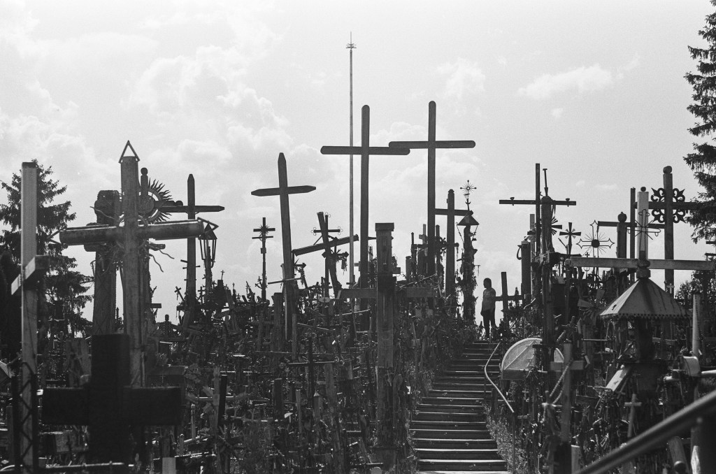 Алиса: Также в Шяуляе нам попалась уличная инсталляция: на щитках были напечатаны фотографии с двойной экспозицией. Мы ее посмотрели и поехали на гору крестов, где тоже наделали много фотографий. Оттуда мы двинули в музей под открытым небом, посвященный Антанасу Суткусу. Там был установлен павильон, в котором на металлических листах распечатаны фотографии. Потом еще хотели заехать в Каунас, но не вышло, так как во время поездки нам позвонили и сказали: «Вы к нам не приезжайте, мы меняем экспозицию, сори». В общем, для одного дня у нас получилась невероятно насыщенная программа.