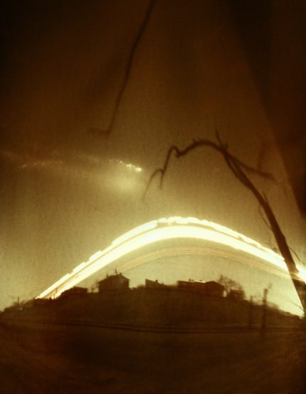 Соларография – это техника аналоговой фотографии запечатления хода солнца. Берется банка, из которой делается камера, туда кладется фотобумага и конструкция очень долго стоит на улице под солнцем – месяц или даже больше. Она стоит, туда постепенно попадает свет и за счет этого на фотографии остается ход солнца за день. А так как она стоит месяц, на конечном результате видно много-много солнечных маршрутов.