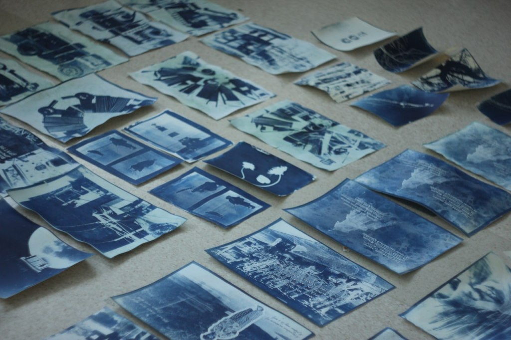 Цианотипия – это метод печати, когда берется специальная эмульсия, нанесенная на бумагу. Сверху кладется пленка, проведенная через инверсию цвета. Какое-то время там проходит свет и потом эмульсия смывается. А картинка, которая была на пленке, запечатляется. Это можно делать не только на бумаге, а еще и на тканях, да и практически на чем угодно.
